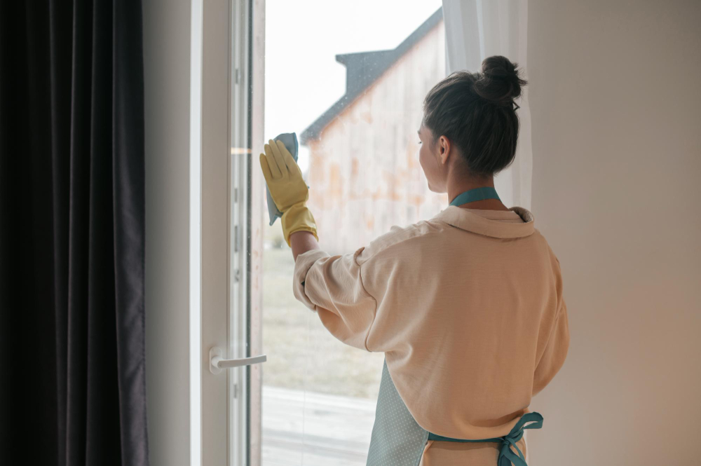 - это окна со строительной пылью, скотчем, клеем на стеклах и/или рамах, с цементными пятнами